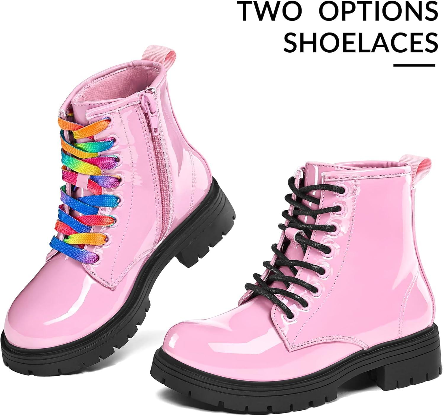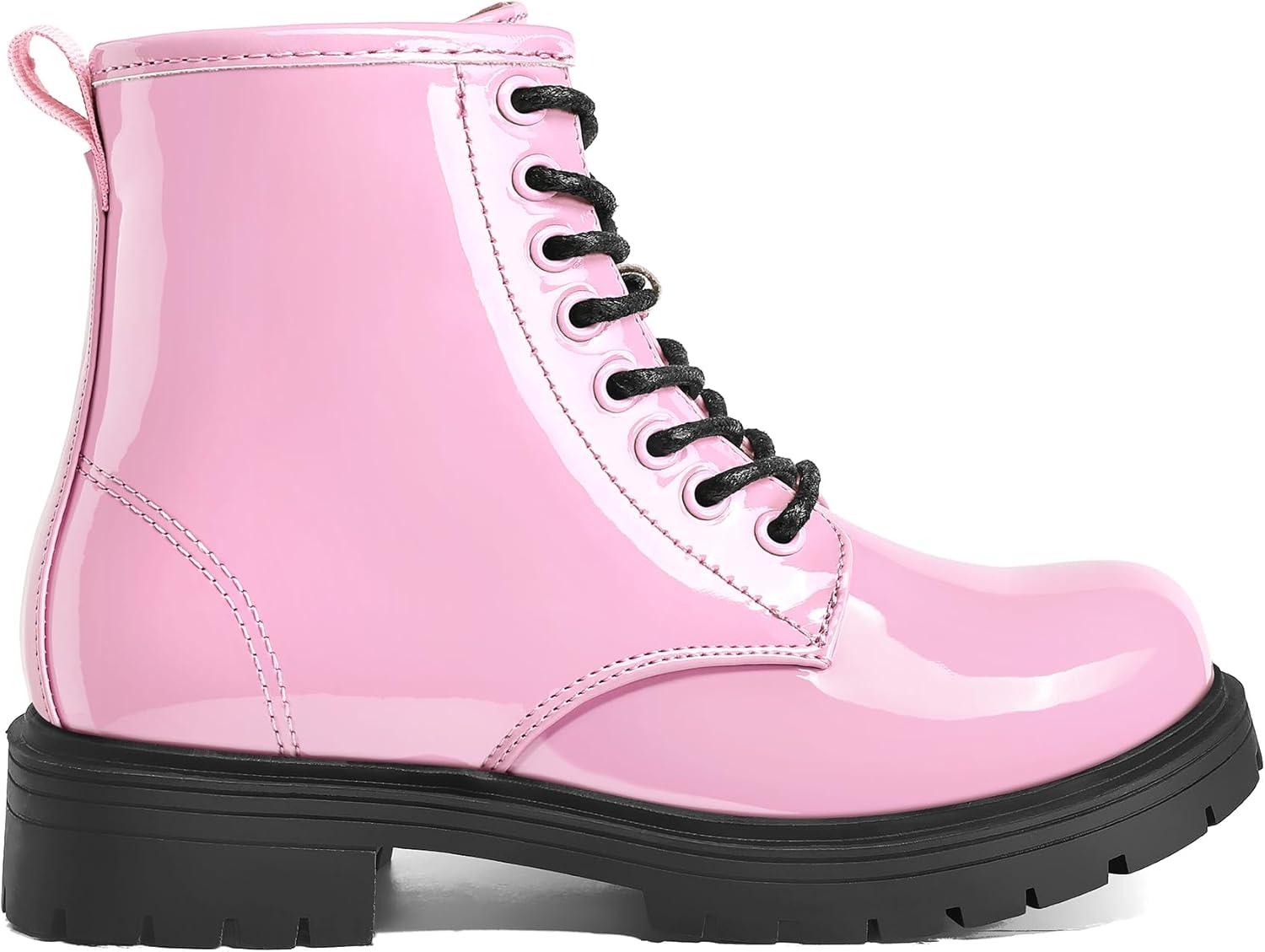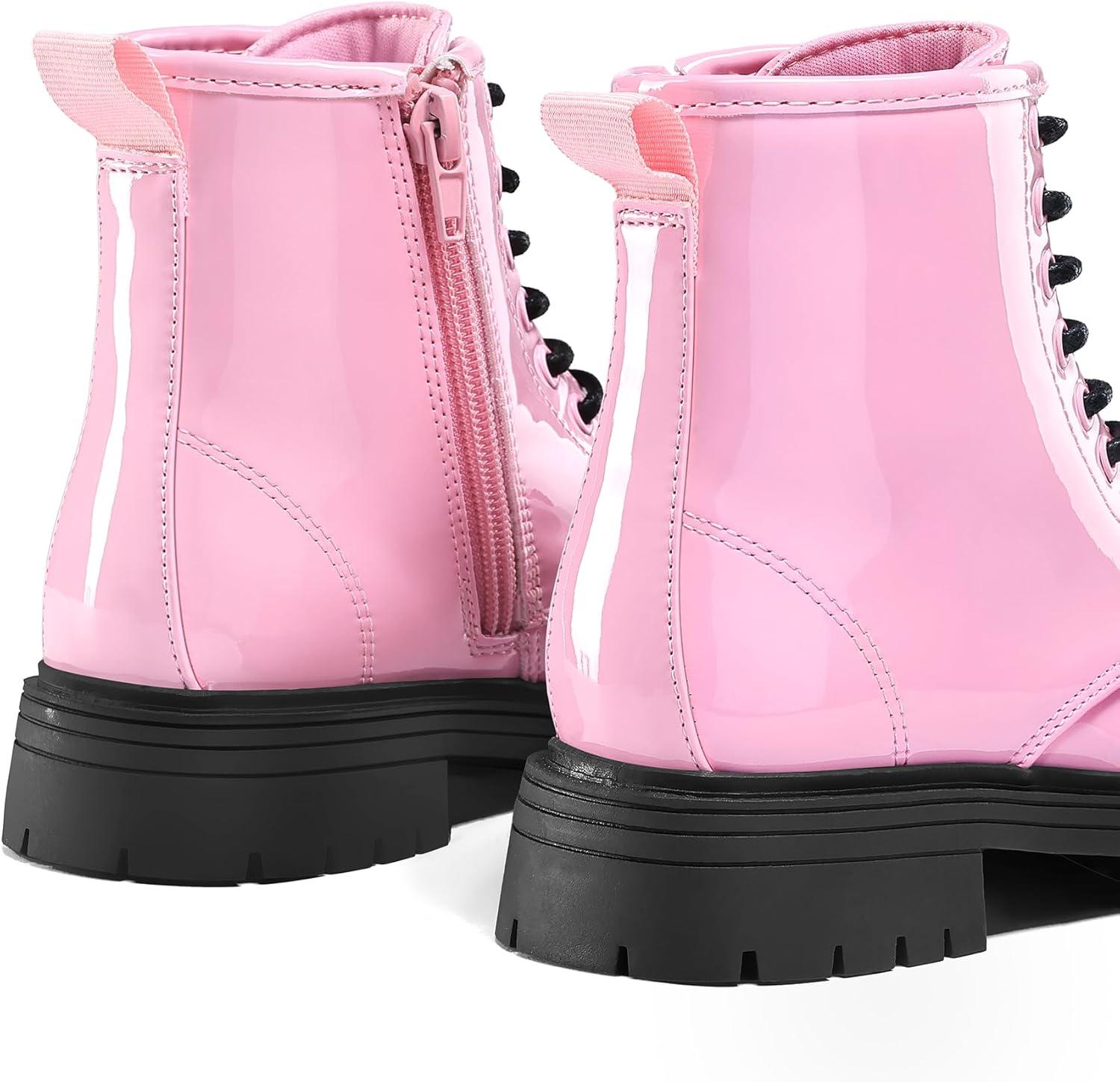 K KomForme Boys Girls Ankle Boots Lace Up Side Zipper Waterproof Combat Shoes Toddler/Little Kid/Big Kid(Pink Patent)
