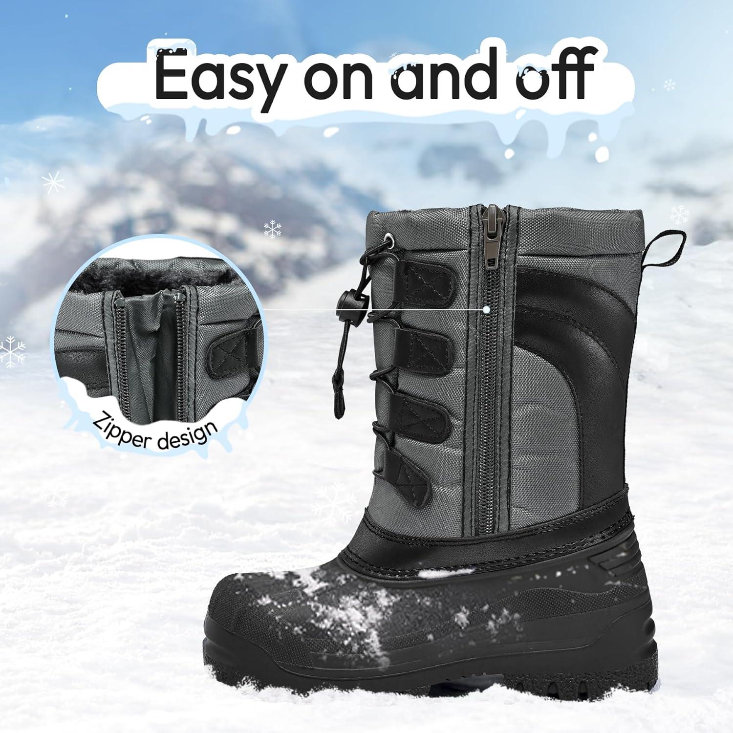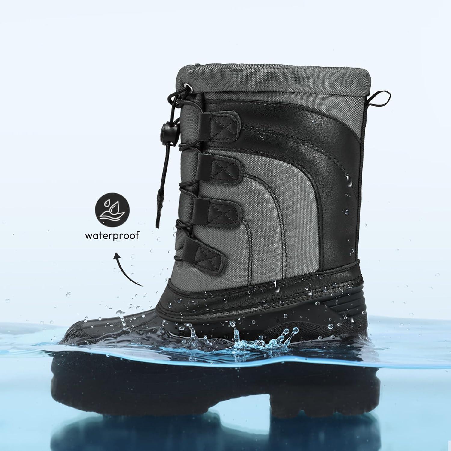 K KomForme Snow Boots for Boys and Girls Outdoor Waterproof Fur Lined Warm Shoes (Toddler/Little Kid/Big Kid)(Grey/Black)
